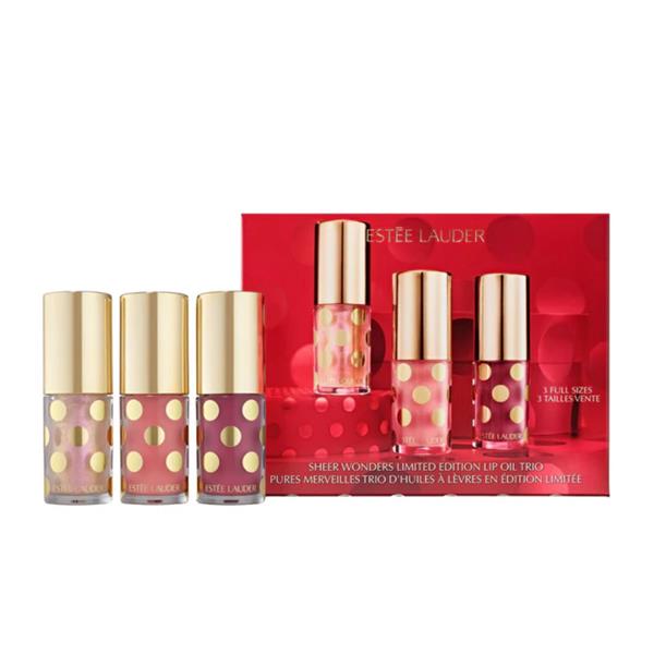 Celebrate the season with the Estée Lauder Sheer Wonders Holiday Lip Oil Trio. This festive set features three nourishing, hydrating lip oils that deliver a sheer, glossy finish, keeping lips soft, smooth, and perfectly holiday-ready.