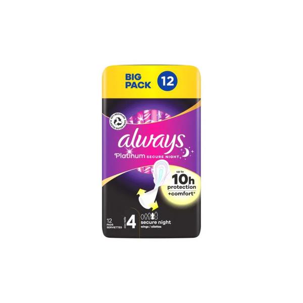 Experience unmatched comfort and protection with Always Platinum sercure night size 4 pads. Designed for your peace of mind during the night, these pads ensure up to 100% leak protection while adapting to your movements for a naturally secure fit.