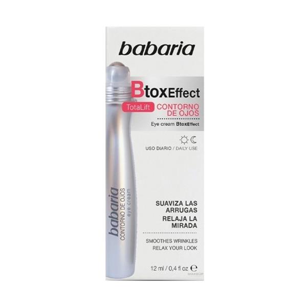 Babaria BToxEffectTotalLift Eye Cream contains a skin-relaxing peptide that doesn't affect facial expression. Fast, long-lasting and reversible action. New global wrinkle-prevention promise that's effective against expression lines, nasolabial folds and marionette lines. Also reduces deep wrinkles. Helps diminish eye bags and dark circles thanks to its steel roller-ball applicator.