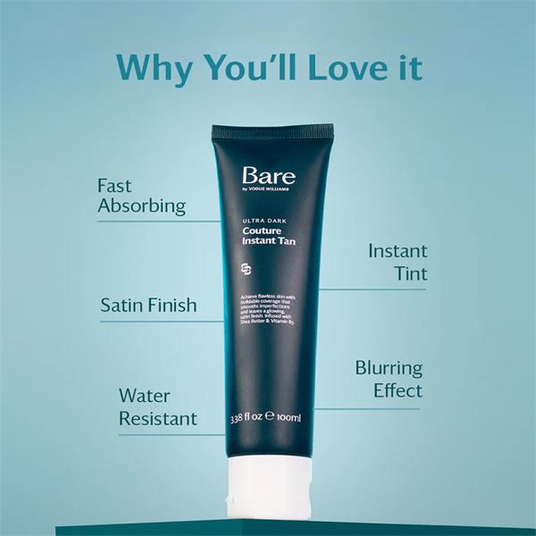 Bare by Vogue Couture Instant Tan is the ultimate wash-off skin perfecter. Instantly blurs imperfections and evens skin tone, while giving you a natural bronzed glow with a satin finish. Reflecting light for a photo-ready finish, this nourishing formula leaves your skin flawless and radiant. Infused with Shea Butter and Vitamin B5.