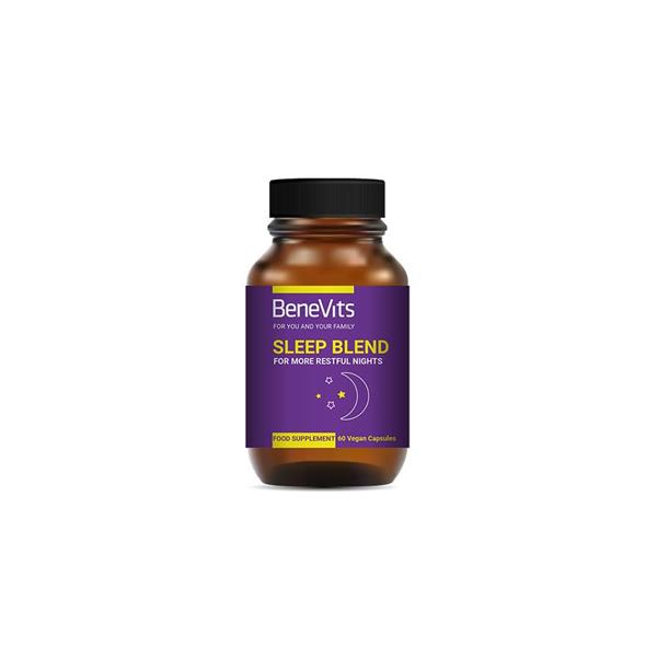 • Benevits Sleep Blend combines lemon balm, chamomile and hops extracts with L-theanine and magnesium in a balanced evening formula. These botanicals have long been traditionally used in relaxing herbal preparations. Magnesium and B vitamins contribute to normal psychological function and normal functioning of the nervous system, making this blend a convenient addition to an evening routine.