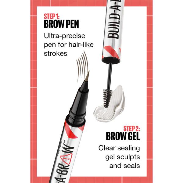 Build-A-Brow is a 2-in-1 tool for a fuller brow look in just 2 easy steps. This precise brow pen plus clear sealing brow gel delivers real-looking, fuller brows and up to 24 hour wear. This waterproof eyebrow makeup is sweat-resistant and smudge-resistant. Vegan Formula: no animal-derived ingredients.
