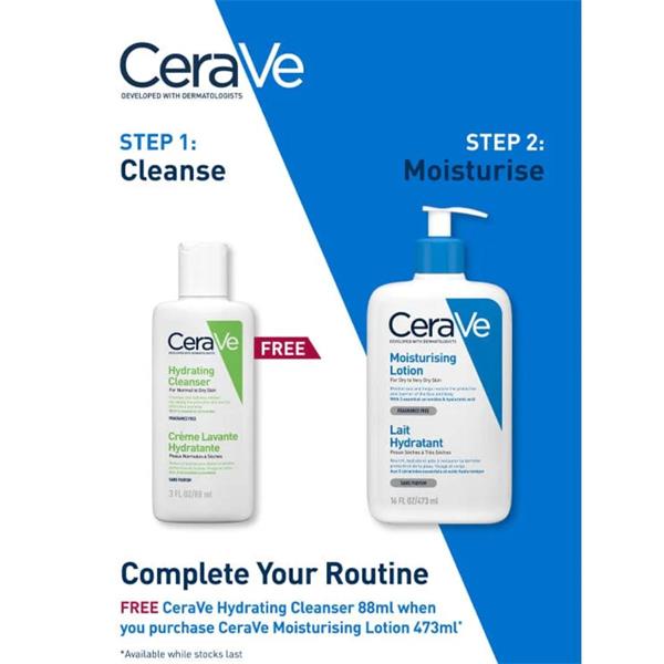 Give your skin the care it deserves with the CeraVe Hydration Essentials Set, developed with dermatologists to target dry to very dry skin. This bundle includes the CeraVe Moisturising Lotion (473ml) – a lightweight, fast-absorbing formula that delivers up to 24-hour hydration while restoring the skin’s natural barrier with 3 essential ceramides and hyaluronic acid. Paired with the CeraVe Hydrating Cleanser (88ml), a gentle, non-foaming cleanser ideal for normal to dry skin, this duo leaves your skin feeling soft, smooth, and replenished. Perfect for everyday use – your simple, effective skincare routine starts here.