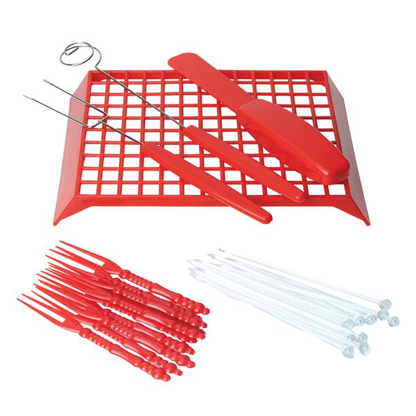 • Features 10 plastic skewers and forks for easy dipping.