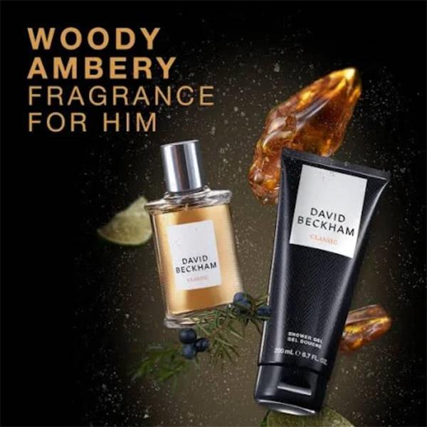 The Classic David Beckham scent features a captivating blend of woody, fresh, and ambery notes. It opens with a refreshing burst of fizzy gin tonic accord, harmoniously mixed with invigorating galbanum and zesty lime. The heart reveals crisp, spicy cypress and nutmeg, perfectly balanced with bright mint, leading you to a luxurious base of warm woody notes and addictive amber.