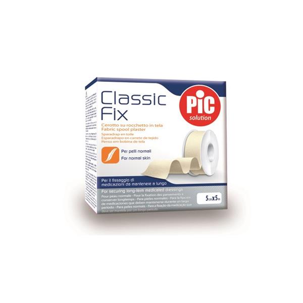 Classic Fix 5cm x 5m White Fabric Spool Plaster for normal skin, indicated for securing long-term medical dressings.