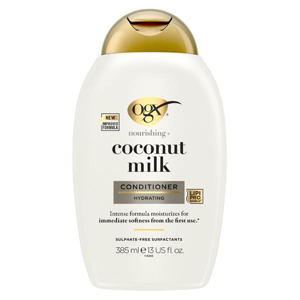 Soften, hydrate & transport hair to the tropics with every swish with the OGX Nourishing + Coconut Milk Conditioner. Suitable for all hair types and textures, this moisturizing conditioner strengthens and hydrates hair, leaving it looking glowing, healthy and beautiful. This deeply nourishing blend, infused with coconut oil, coconut milk, and egg white proteins, helps add luster and softness to hair for smooth and healthy-looking hair. Expect super shine and added moisture with every use without weighing hair down. Plus, the creamy coconut, white peach and shea butter scent makes conditioning an all-around sensory experience that leaves locks with an irresistibly good smell. Paraben-free with sulfate-free surfactants, this coconut hair conditioner represents beauty, pure and simple. For best results, use this irresistibly delicious-smelling conditioner with OGX Nourishing + Coconut Milk Shampoo to help with every day moisture.