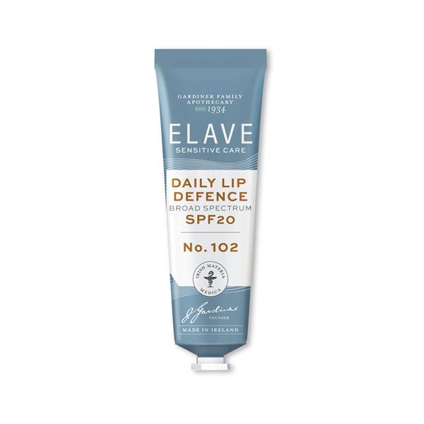 Elave Daily Lip Defence SPF20 No.102 is an ultra-hydrating lip balm with broad spectrum sun protection factor SPF20 to protect lips from the harmful effects of UVA and UVB rays. A multi-action formula with Coconut Oil, Shea Butter, naturally derived Lipoamino Acid and anti-oxidant Vitamin E to moisturise, re-condition, smooth and protect lips. Peppermint Oil gives a cooling sensation. Lips are soft and protected from environmental damage.