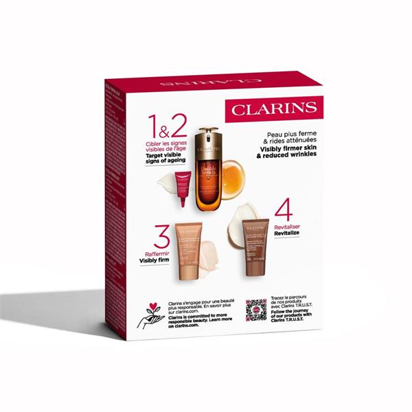 Your routine for firmer-looking, radiant skin and visibily reduced wrinkles. Double Serum address visible signs of ageing, Extra-Firming Day to visibly firm and boost radiance, Extra-Firming Night to firm and smooth and Total Eye Lift, the expert eye contour concentrate.