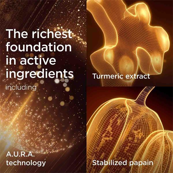Within the [COLOUR] phase, new A.U.R.A. (Advanced Ultra Radiance Amplifier) technology with light-boosting ingredients and illuminating microcrystals, helping to give an immediate glow effect.