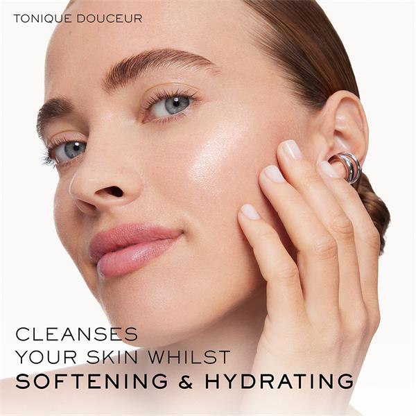 • Follow with Tonique Douceur on a cotton pad or with hands, sweeping over face and neck to complete your cleansing ritual. Use daily, morning and evening.