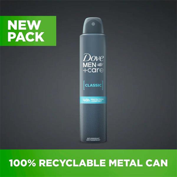 Dove Men+Care Classic Anti-Perspirant Aerosol Deodorant provides the performance and comfort you need to face the day with confidence. This deodorant spray for men offers up to 48 hours of sweat and odour protection