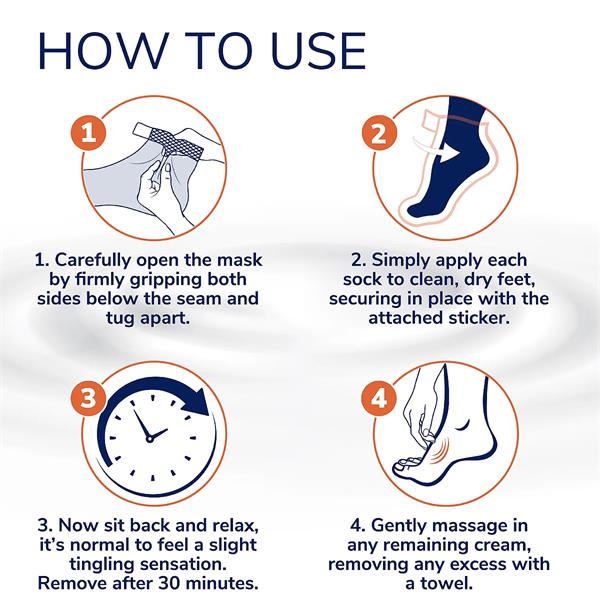 SOFT, REVITALISED FEET: enriched with shea butter and essential oils like lavender and peppermint, these masks leave feet feeling soft and refreshed