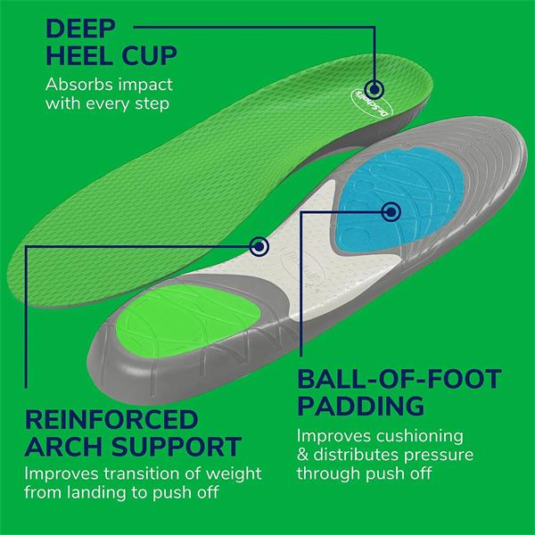 HELP TO RELIEVE PAIN FROM COMMON SPORTS INJURIES: Dr. Scholl’s Run Shock Absorbing Insoles help alleviate pain from common running injuries, including runner’s knee, shin splints, and plantar fasciitis, keeping you comfortable on the move