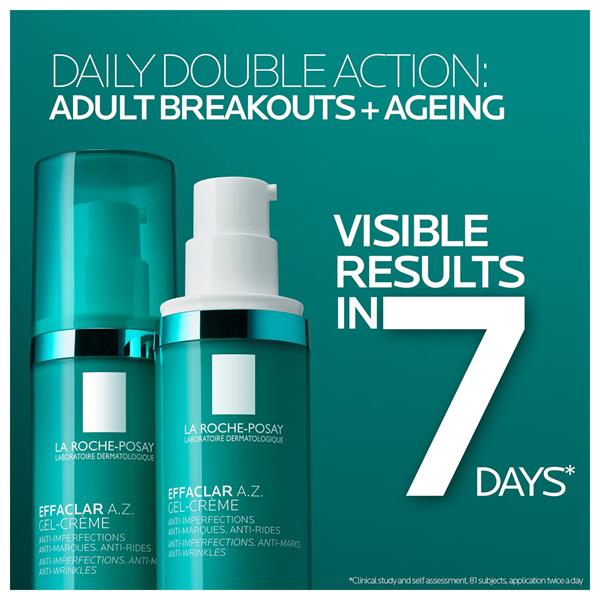 Take control of breakouts with La Roche-Posay Effaclar A.Z. Gel Cream 40ml. Specially formulated for oily and blemish-prone skin, this lightweight gel-cream helps reduce spots, unclog pores, and improve overall skin clarity. It absorbs quickly without leaving a greasy residue, delivering hydration while refining skin texture for a smoother, more even-looking complexion. Ideal for everyday use, it helps you achieve visibly clearer, healthier-looking skin with continued use.