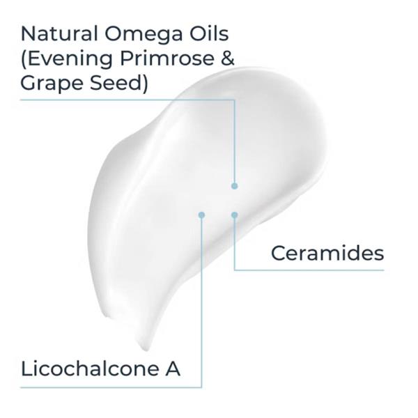 Aqua, Glycerin, Butyrospermum Parkii Butter, Octyldodecanol, Caprylic/Capric Triglyceride, Vitis Vinifera Seed Oil, Distarch Phosphate, Glyceryl Stearate SE, Cetearyl Alcohol, Oenothera Biennis Oil, Glycyrrhiza Inflata Root Extract, Ceramide NP, Tocopherol, Sodium PCA, Glycine, Arginine HCL, Carbomer, Citric Acid, Ethylhexylglycerin, Sodium Cetearyl Sulfate, Sodium Citrate, Caprylyl Glycol, Sodium Hydroxide, Ascorbyl Palmitate, Trisodium EDTA, Phenoxyethanol, Sodium Benzoate.