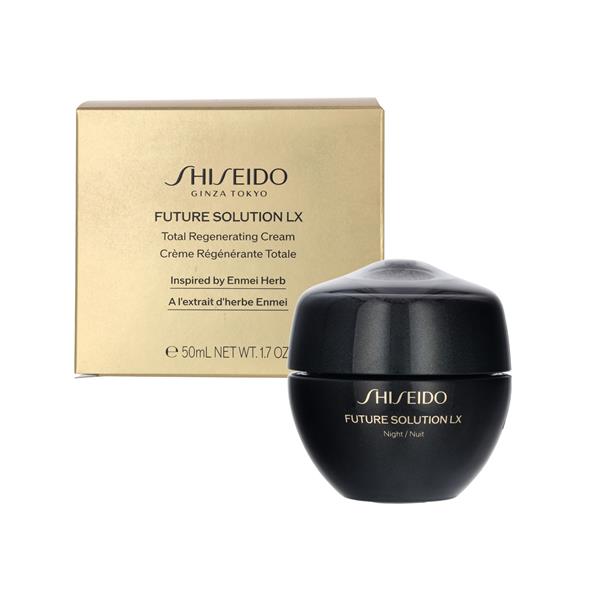 Experience the pinnacle of skincare luxury with Shiseido Future Solution LX Total Regenerating Cream. This sumptuous night cream works while you rest, deeply nourishing and rejuvenating your skin from within. Infused with advanced anti-aging technology, it helps reduce fine lines, improve firmness, and restore a radiant, youthful glow. Wake up to skin that feels softer, smoother, and visibly revitalized—because true beauty never sleeps.