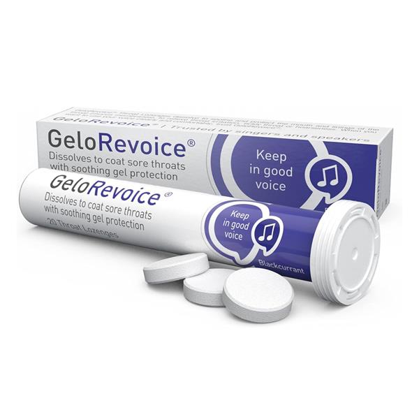 • Are you looking for help for a sore throat and acute difficulty swallowing? Suck GeloRevoice to relieve a sore throat and hoarseness. The sugar-free throat lozenges create a long-lasting protective film on the mucous membrane, moisten it and thereby improve your voice.