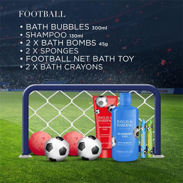 Score the winning goal with your little ones with our football inspired kids collection infused with our blueberry fizz scent. Perfect to create some bath time fun!