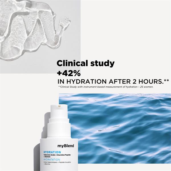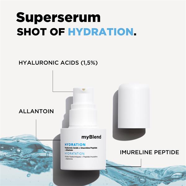 myBlend's Hydration Super Serum provides your skin with a burst of hydration for dry, dehydrated skin. Infused with water, the skin is left feeling intensely hydrated and replumped.