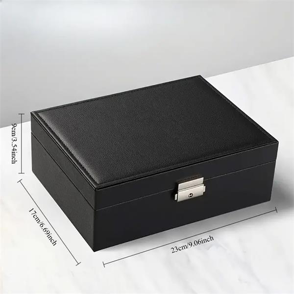 Glam faux leather jewelry organizer with key lock and soft fabric lining. Large-capacity, multi-compartment design perfect for earrings, necklaces, and bracelets. Elegant and practical desktop decor, ideal as a gift for women. Available in Black, Pink, and White.