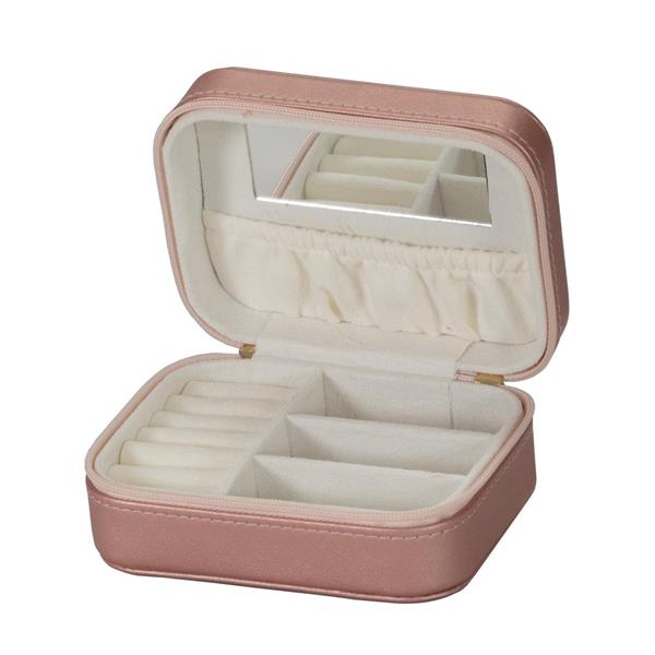 Travel in style with this elegant rose gold finish jewellery case, designed to keep your treasures safe and organised on the go. Inside, you'll find a handy mirror, elasticated pocket, ring rolls, and compartments for all your essentials. Finished with a secure zip closure, it’s the perfect blend of beauty and practicality.