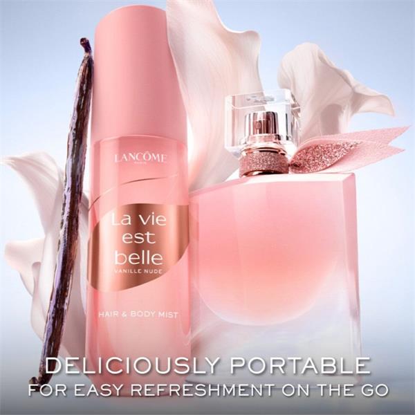 A delicious new way to smile. Your favourite fragrance now has a sparkling companion. La Vie Est Belle Vanille Nude Hair & Body Mist is a lighter, fresher musky gourmand reinterpretation of its Eau de Parfum, designed to refresh, layer and reinvent your fragrance journey throughout the day. THE SCENT: A FRESH MUSKY GOURMAND Refreshingly delicious, the Vanille Nude Mist unveils an unexpected infusion of delicious, glazed vanilla, luminous, solar jasmine and creamy white musk. A softer, more playful way to wear La Vie Est Belle - perfect for everyday indulgence. Top notes: Luminous jasmine Heart notes: Glazed vanilla Base notes: Creamy white musk THE EXPERIENCE: LAYER, REFRESH & PERSONALISE Designed as a hair and body mist, this versatile formula offers a fresh, sensorial way to enjoy La Vie Est Belle. Wear it alone for a soft, radiant expression, or layer it with your Eau de Parfum to customise, refresh and prolong the joy of your scent throughout the day. Perfect for reapplying on the go, it can be layered or mixed with other La Vie Est Belle Hair & Body Mists to create your personalised blend that reflects your version of happiness. WHY YOU'LL LOVE IT - A lighter, fresher interpretation of Vanille Nude Eau de Parfum. - Created by three renowned French perfumers behind the original fragrance. - Perfect for layering, refreshing and reapplying throughout the day. - Designed for skin, hair or clothes. - A playful, on-the-go format that fits effortlessly into your daily routine. - Can be layered with other mists in the collection to create your customised scented blend. THE BOTTLE: A PORTABLE, PLAYFUL SMILE Adorned with a golden wing of happiness, the lightweight bottle is designed to effortlessly fit into your bag. Playful yet elegant, it's perfect for reapplication, wherever life takes you.