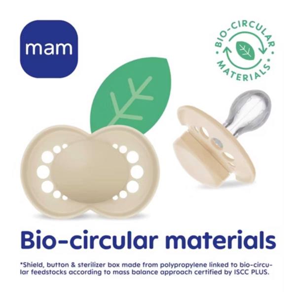 Introducing the MAM Original Pure Soother, MAM’s first carbon neutral soother made from bio-renewable materials. The soother button, shield and steriliser box are all made from ISCC PLUS certified Circular PP, which guarantees the safety and superior product quality you would expect from a MAM product, whilst being kinder to the environment.