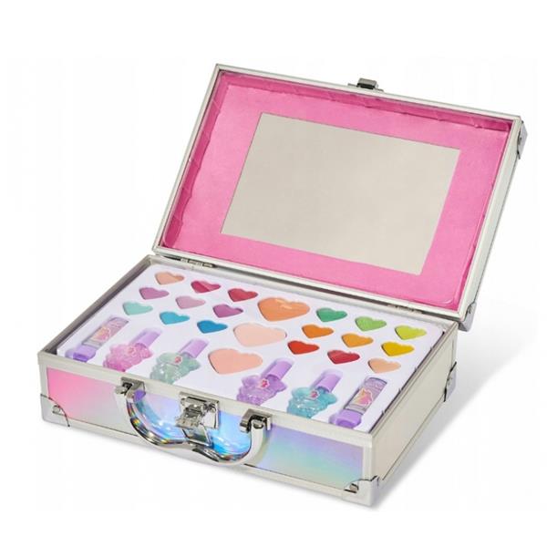 Martinelia delights little ones with this adorable Little Unicorn metal suitcase filled with children’s cosmetics. The sparkling case with silver details includes 18 eyeshadows, 4 water-based nail polishes, 3 bronzers, and 2 lipsticks.