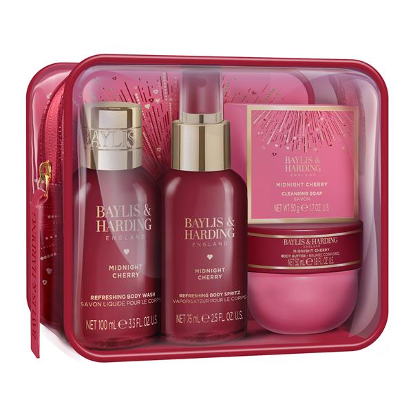 Baylis & Harding Midnight Cherry Luxury Travel Wash Bag Gift Set