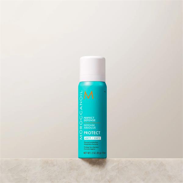 Moroccanoil® Perfect Defense is a weightless, dry aerosol, heat protective spray. This nourishing, argan oil and vitamin-fueled formula re-hydrates the hair while protecting against the damaging effects of heat styling up to 450°F/230°C.