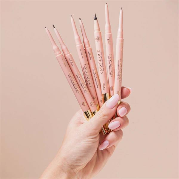 A 2-in-1 product featuring both a twist up pencil to fill in and a micro-liner pen to define sparse areas of the brows.