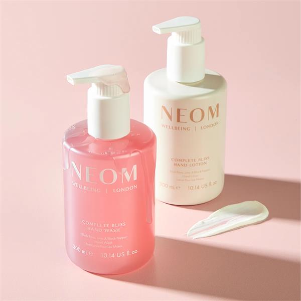 • After washing your hands with Complete Bliss Hand Wash, dry them thoroughly and massage the lotion into your hands, fingers, and wrists. Take a moment to inhale the scent of 19 relaxing essential oils and let a sense of calm wash over you. Hands soothed, mind soothed.