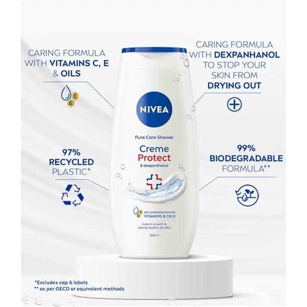 Caring shower gel that leaves you with a soft and healthy skin feel. Enriched with vitamins C & E, precious oils, and dexpanthenol, this body wash gently cleanses and protects the skin.
