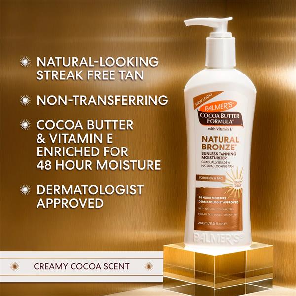 With just a touch of self tanner, Palmer's Cocoa Butter Formula Natural Bronze creates a delicate, sun-kissed, summer glow all year long. Gradually builds a subtle tan within a few days, while deeply moisturising your skin.