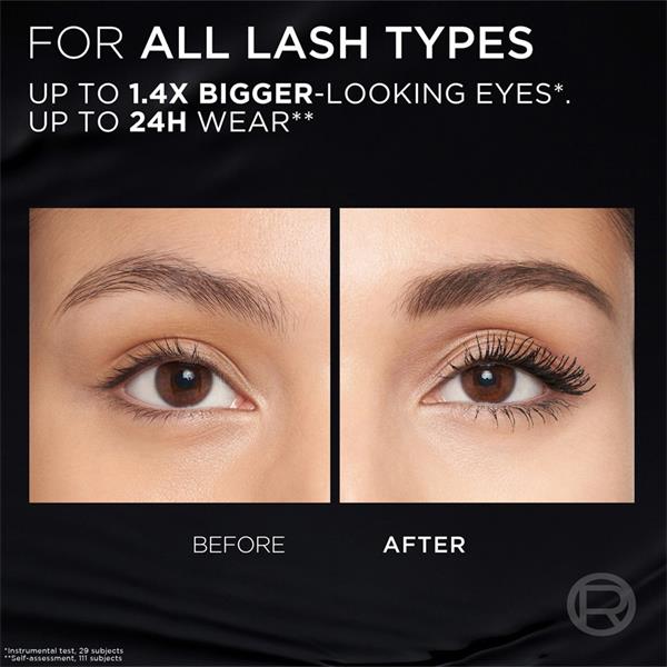 Infused with ultra black pigments and the long wear polymer, its new ultra flexible formula with 5% Stretchflex complex delivers extreme black intensity and up to 24H panoramic volume** that lasts 'til the morning after.