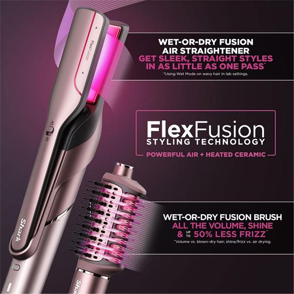• Wet-or-Dry Fusion Hair Straightener: POWERFUL AIR + HEAT-CONTROLLED CERAMIC This straightening attachment dries and straightens at the same time with no heat damage*. Get sleek, straight styles in as little as one pass**. Perfect for wet or dry hair.