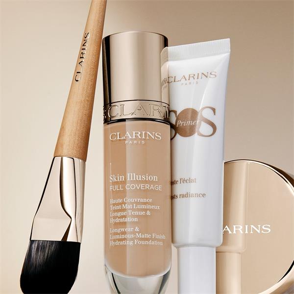 • Can be applied with the Clarins Flat Brush or Multi-Use Foundation Brush, a beauty blender or your fingers, using light movements, starting from the centre of the face, working outwards.