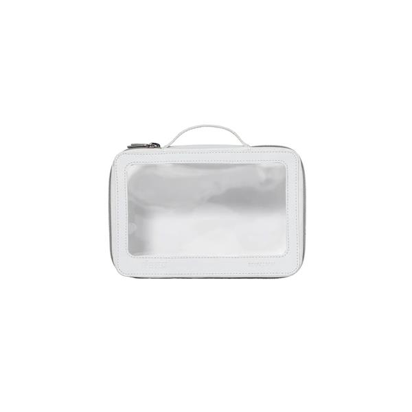 Stay organized on the go with the Skin Studio Double-Layered Travel Bag. Made from premium PU leather and PVC, this stylish white bag features two roomy compartments and transparent windows for easy access to your skincare essentials. Ideal for storing all your Skin Studio products and accessories.