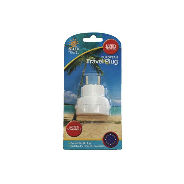 The Sure Travel UK to European Plug Adapter is perfect for travelling. Suitable to use in European and Mediterranean destinations, as well as a range of other global regions including Scandinavia, Egypt, Iceland, Indonesia, Morocco, Turkey, Russia, South Korea, and the Middle East.