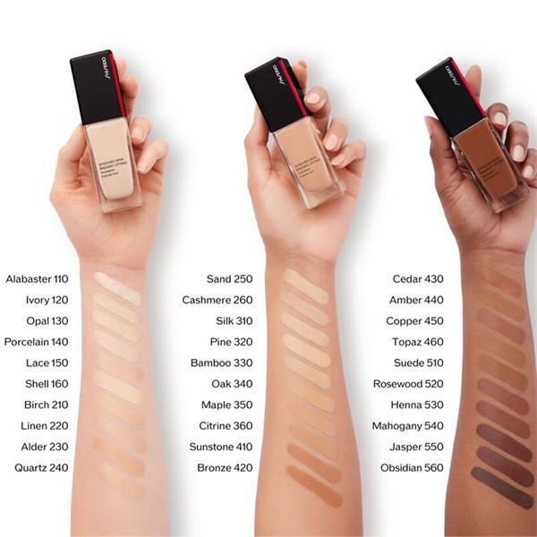 A hydrating foundation that illuminates skin in any light. SHISEIDO Light-Adjusting Technology instantly adapts and responds to every light source to smooth and diffuse fine lines and create a luminous, lifted effect on the skin. With continued use, bare skin is firmer and visibly lifted. Medium-to-full, buildable coverage | Radiant Finish | 24H wear | 24H hydration