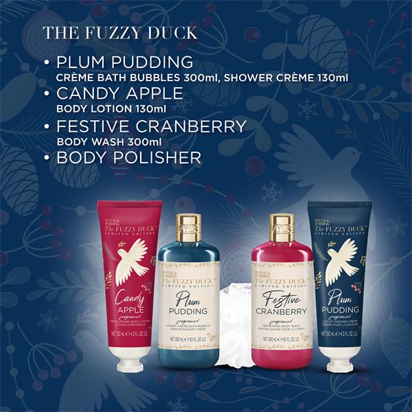 A joyful celebration of Christmas tradition and festive delights. Indulge your senses with our festive cranberry,plum pudding and candy apple fragrances. Charming seasonal motifs adorn the design symbolising Joy, Peace and Love to spread festive cheer to everyone this festive season.