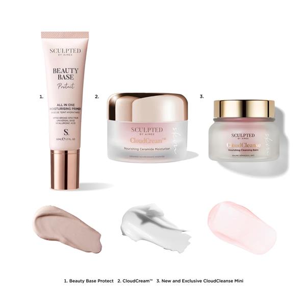 Treat your skin to a little extra TLC with the ultimate skincare gift. Inside, a carefully curated trio of must-have skincare formulas that you’ll want to unwrap immediately. It includes our new and exclusive – CloudCleanse – a nourishing cleansing balm that melts away makeup while leaving skin soft and hydrated. We’ve paired this with our bestselling CloudCream™, a lightweight, Ceramide-rich cream designed to soothe, strengthen, and repair dehydrated or sensitised skin. The finishing touch? Beauty Base Protect, the one-and-done moisturising makeup primer with SPF 50 to prep and protect skin.