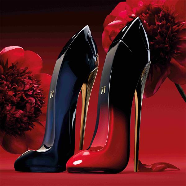 Very Good Girl Elixir reaches new heights of seduction with a red-to-black gradient stiletto contrasted with a glimmering gold heel.