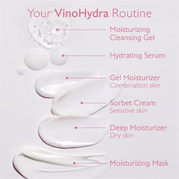 • Apply the VinoHydra Moisturizing Cleansing Gel morning and evening to damp skin.
