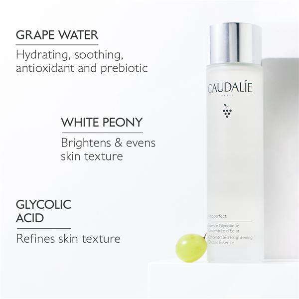 The Concentrated Brightening Glycolic Essence is the 1st step in the Vinoperfect dark spot correcting routine and prepares the skin for the benefits of the Vinoperfect Serum. It eliminates the dead skin cells that make the complexion dull and visibly revives the skin’s natural glow.