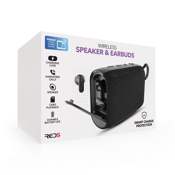 Featuring a sleek and compact design, the wireless speakers and earbuds provide an immersive listening experience you can take anywhere. The included charging case ensures your devices are always ready to rock, giving you up to 180 minutes of playtime on a single charge.