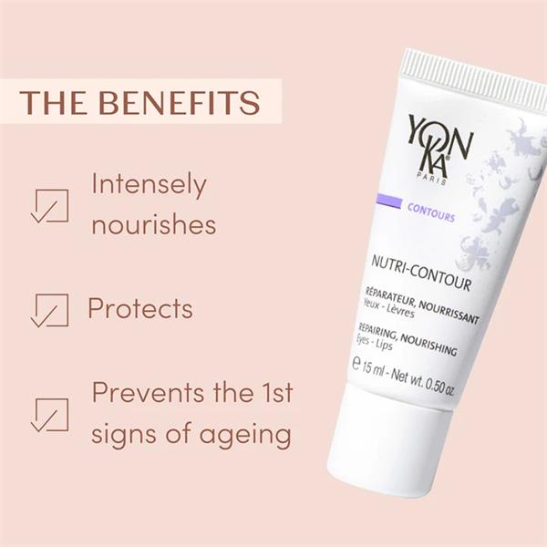 Discover the transformative power of YonKa Paris Yonka Nutri-Contour Baume 15Ml, a luxurious 2-in-1 nourishing treatment designed to rejuvenate both your eye and lip contours. This rich balm is infused with hazelnut oil and vitamin E, creating a cocoon of softness that delivers intense hydration and protection against dryness and early signs of ageing.